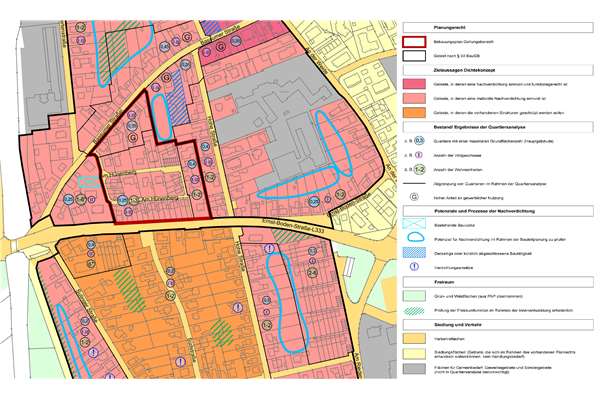 Maßnahmen der Innenentwicklung sind die Wiedernutzbarmachung von Flächen, die bauliche Nachverdichtung oder auch die Aufwertung der innerstädtischen Bebauungsstruktur. Vom Grundsatz her bietet die städtebauliche Nachverdichtung aus stadtplanerischer Sicht eine gute Maßnahme zur Schaffung von Wohnraum, da die Gebiete bereits voll erschlossen und an die bestehende Infrastruktur angeknüpft sind.