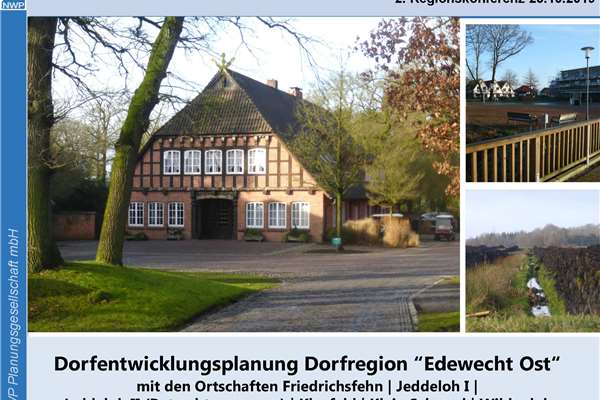 24.10.20192. Regionskonferenz der Dorfentwicklungsplanung Edewecht-OstDie NWP Planungsgesellschaft mbH hat am 23. Oktober die 2. Regionskonferenz der Dorfentwicklungsplanung Edewecht-Ost in Friedrichsfehn durchgeführt.Probleme und Lösungen zu den beiden Schwerpunktthemen Mobilität und Ehrenamt wurden intensiv diskutiert. Hierzu wurden Experten eingeladen, die Fachbeiträge zu den Themen beitrugen und anschließend für die Diskussionen zur Verfügung standen.NWP möchte sich herzlich für das Interesse und das Engagement im aktuellen Prozess bedanken.Wir hoffen auf weitere anregende Sitzungen im weiteren Verlauf des Dorfentwicklungsprozesses Edewecht-Ost.