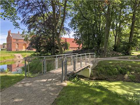 22.06.2020Wiederherstellung und Gestaltung der historischen Gartenanlage „Hof Tammen“ am Steinhaus in BunderheeDie Maßnahme der ostfriesischen Landschaft ist Bestandteil der Dorferneuerungs-/-entwicklungsplanung für die Ortsteile Bunderhee und Bunderhammrich. Sie wurde vom Amt für regionale Landesentwicklung, der Gemeinde Bunde, dem Landkreis Leer, der VGH-Stiftung und der Bingo-Umweltstiftung unterstützt.Das Bauvorhaben dient der Schaffung, Erhaltung, Verbesserung und dem Ausbau von Freizeit- und Naherholungseinrichtungen.Der Garten des ehemaligen „Hof Tammen“ war seit Jahren nicht mehr gepflegt worden und war durch den Wildwuchs von Haselnusssträuchern, Brombeeren usw. für Spaziergänger nicht mehr zugänglich. Die Stahlbrücke über den Teich war zerfallen und nicht mehr verkehrssicher.Es wurden Wege mit wassergebundenen Decken, in der Lage wie in historischen Plänen von J. Vroom dargestellt, neu geschaffen, die Stahlbrücke wurde erneuert und eine kleine Holzbrücke als Verbindung zum historischen Steinhaus geschaffen. Zur Verbesserung der Aufenthaltsqualität wurden Bänke aufgestellt. Um dies realisieren zu können, mussten abgeknickte und nicht mehr standsichere Bäume sowie wucherndes Buschwerk gerodet werden. Um das Bild des Gartens aufzuwerten, wurden standortgerechte Bäume und Unterpflanzungen sowie alte Obstbaumsorten und Beerengehölze neu gepflanzt.Die Planung wurde mit Blick auf die Belange von Natur und Landschaft mit der unteren Naturschutzbehörde beim Landkreis Leer und die Belange der Denkmalpflege mit der unteren Denkmalschutzbehörde beim Landkreis abgestimmt und genehmigt.Lageplan (PDF, 1 MB)